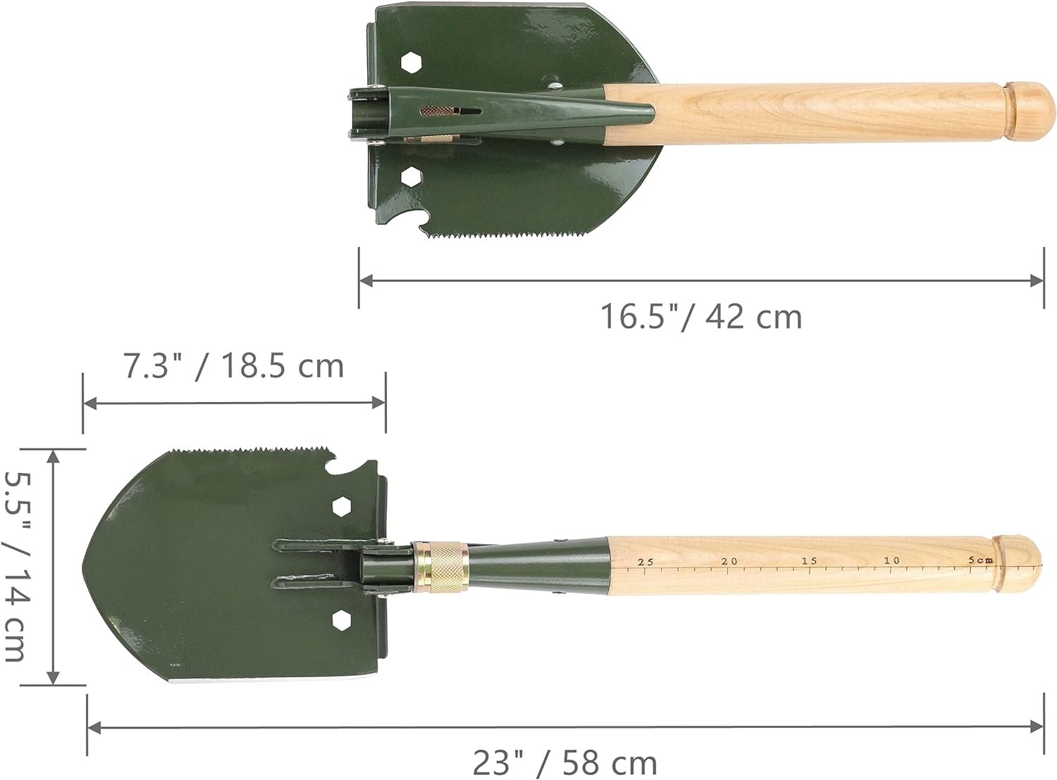 • 🐶 Lightweight and Durable: Our wood handle camping shovel is measuring 58cm / 23” and weighing 900g / 1.98 Pounds , more than 27% lighter than others’ tri-foldings. It is built to withstand the toughest outdoor conditions without weighing you down.