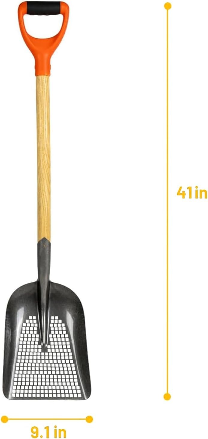 - Wide Application: Shovel used as garden edging shovel,camp shove,plow shove,trenching shovel,snow shovel for driveway,survival shovel. Suitable for sand screening machines and shovels on beaches and farms. Eliminate the feces of chickens and livestock, dwarf goats, rocks outside the racetrack, keep your farm clean and tidy, or excavate, elevate, and filter sand to reveal your treasure, cleaning sandboxes, filtering gardens, alpacas, sand from goat stalls.
